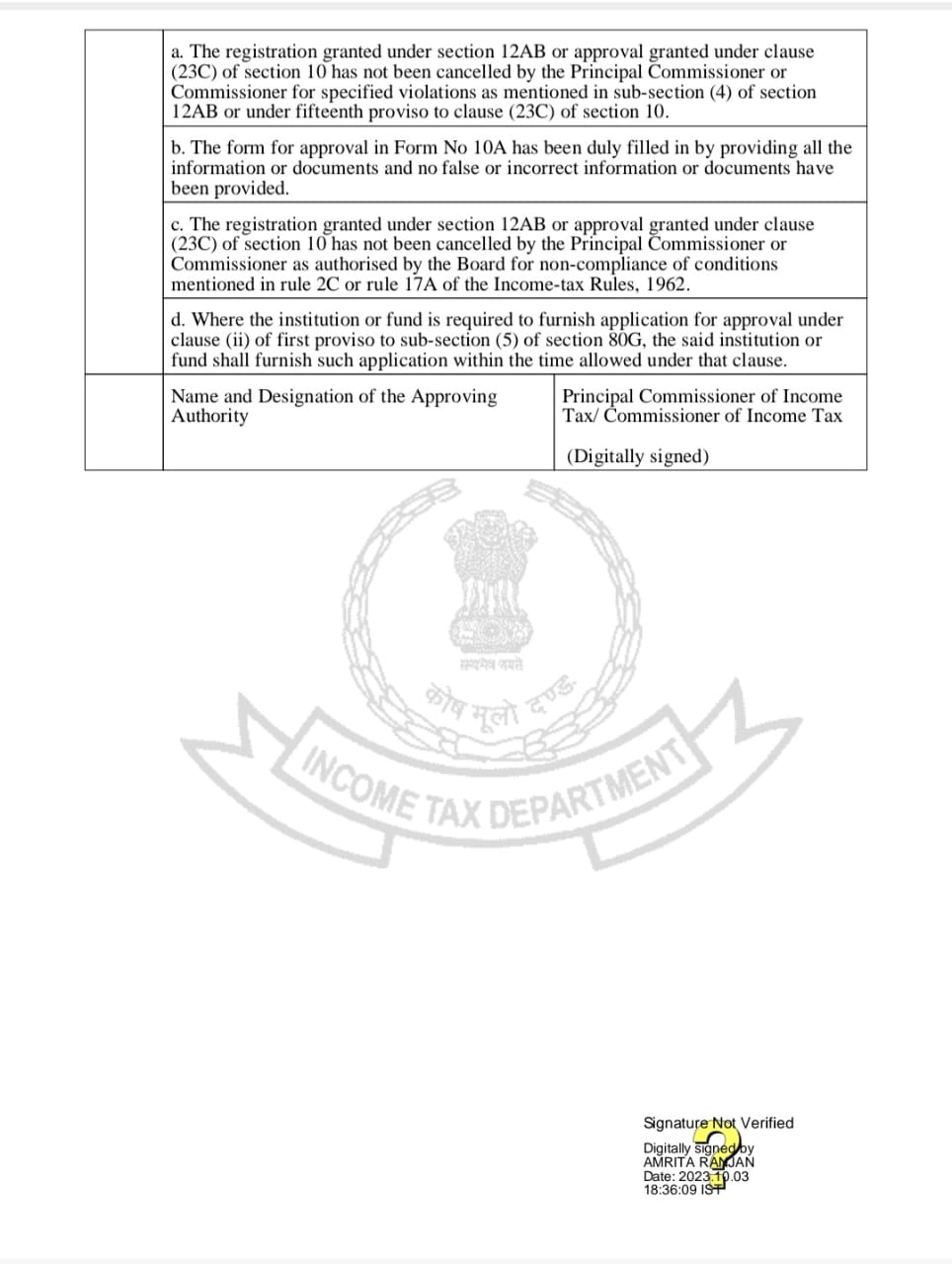 12 a & 80G certificate